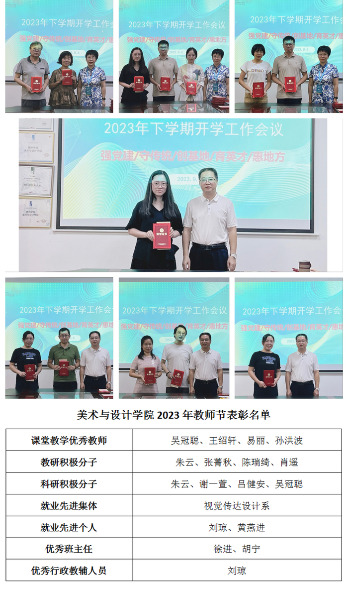 会上,为加强榜样示范引领作用,营造崇尚先进、学习典型的良好氛围,激发全院教师的工作积极性,学院还对2022-2023学年在各项工作中表现优秀的教师与集体进行了表彰。