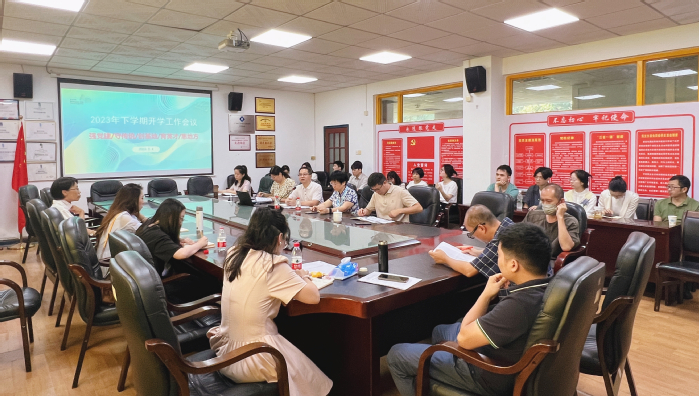 会议伊始,邓育明书记带领全体教职工重温《新时代高校教师职业行为十项准则》,强调全体教师要始终坚定政治方向,恪守教师职业道德,明确工作底线,为人师表,树立典范。邓书记还以“强党建”为主题发表讲话,对2023年上学期的党建工作进行总结回顾,着重介绍了主题教育工作成效,并部署新学期党建工作,强调要强化党建引领,从加强安全维稳、理论学习、师德建设、团学建设、支部建设等五个方面着手,争取新学期在党建创优中获得新的突破。