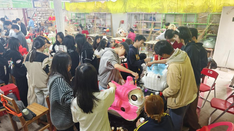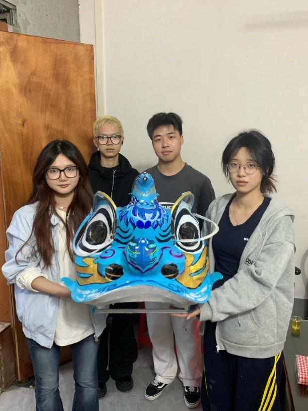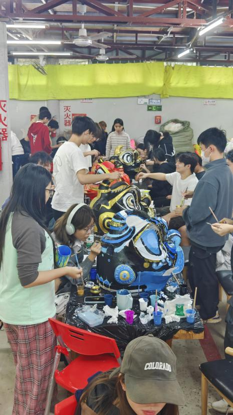 学生们这次体验的是狮头白模赋色环节,有的同学秉持传统理念,精心调红、黄等经典配色,尽显非遗文化的厚重底蕴;有的同学大胆突破传统框架,运用撞色设计、几何纹样等现代视觉元素,为狮头注入潮流气息,让传统非遗与当代设计理念碰撞出新颖火花。