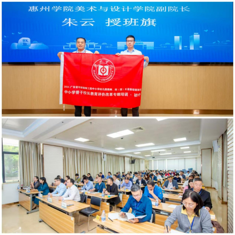2025年10月25日,由惠州学院广东省中小学教师发展中心主办、美术与设计学院承办的2025年广东省中小学骨干校长教育评价改革专题培训(初中)顺利开班。来自全省各地的96名初中骨干校长齐聚惠院,他们将进行为期七天的集中研修活动。