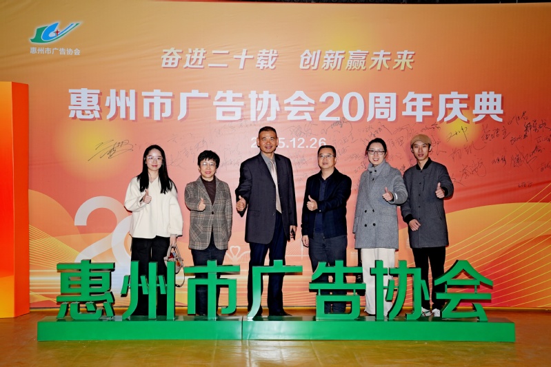 2025年12月26日,以 “奋进二十载 创新赢未来” 为主题的惠州市广告协会成立20周年庆典隆重举行,惠州学院美术与设计学院受邀出席,党委书记邓育明、院长李帆、副院长吴冠聪及教师代表陈瑞绮、郑学遥共同参与此次盛会。